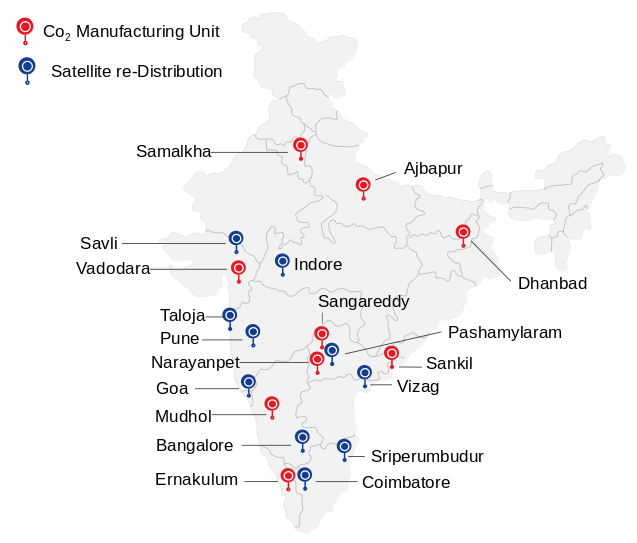SICGIL also owns 13 CO2 depots all over India to provide a round the clock supply of food grade CO2.